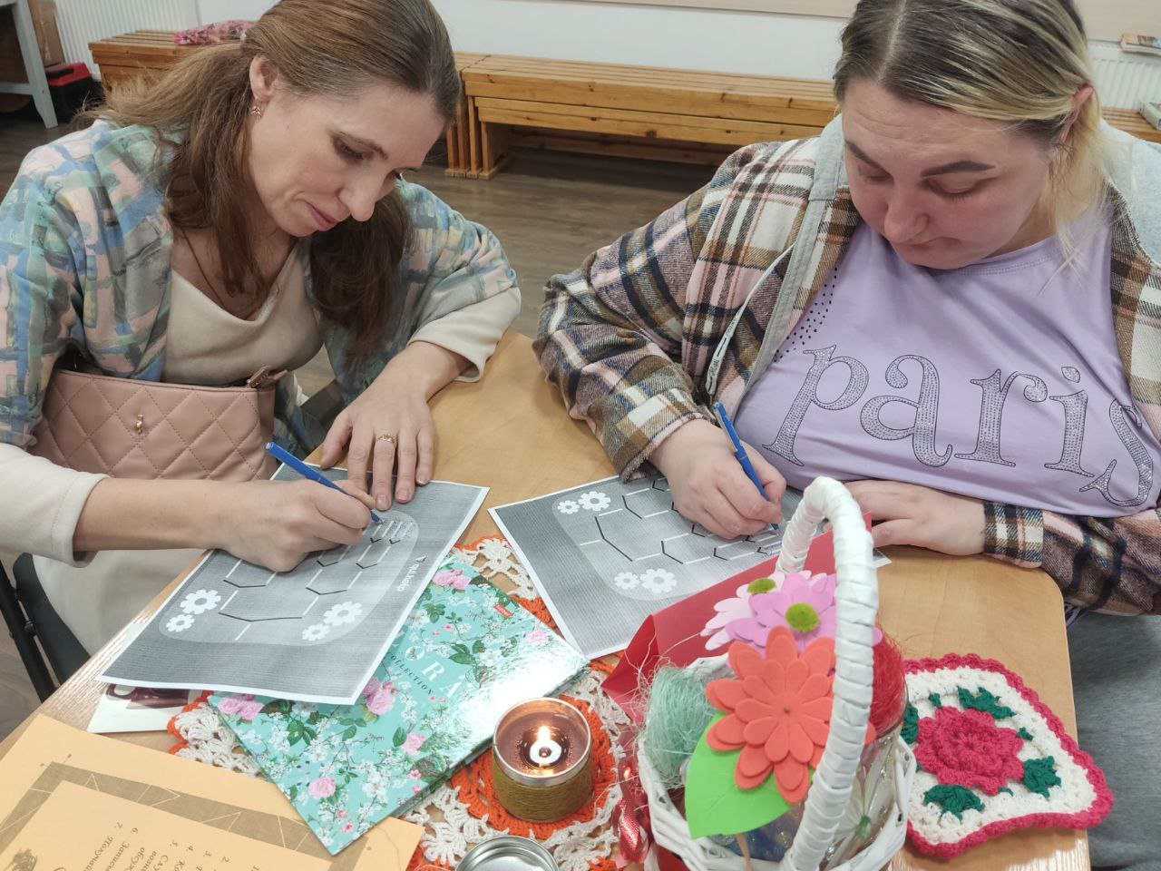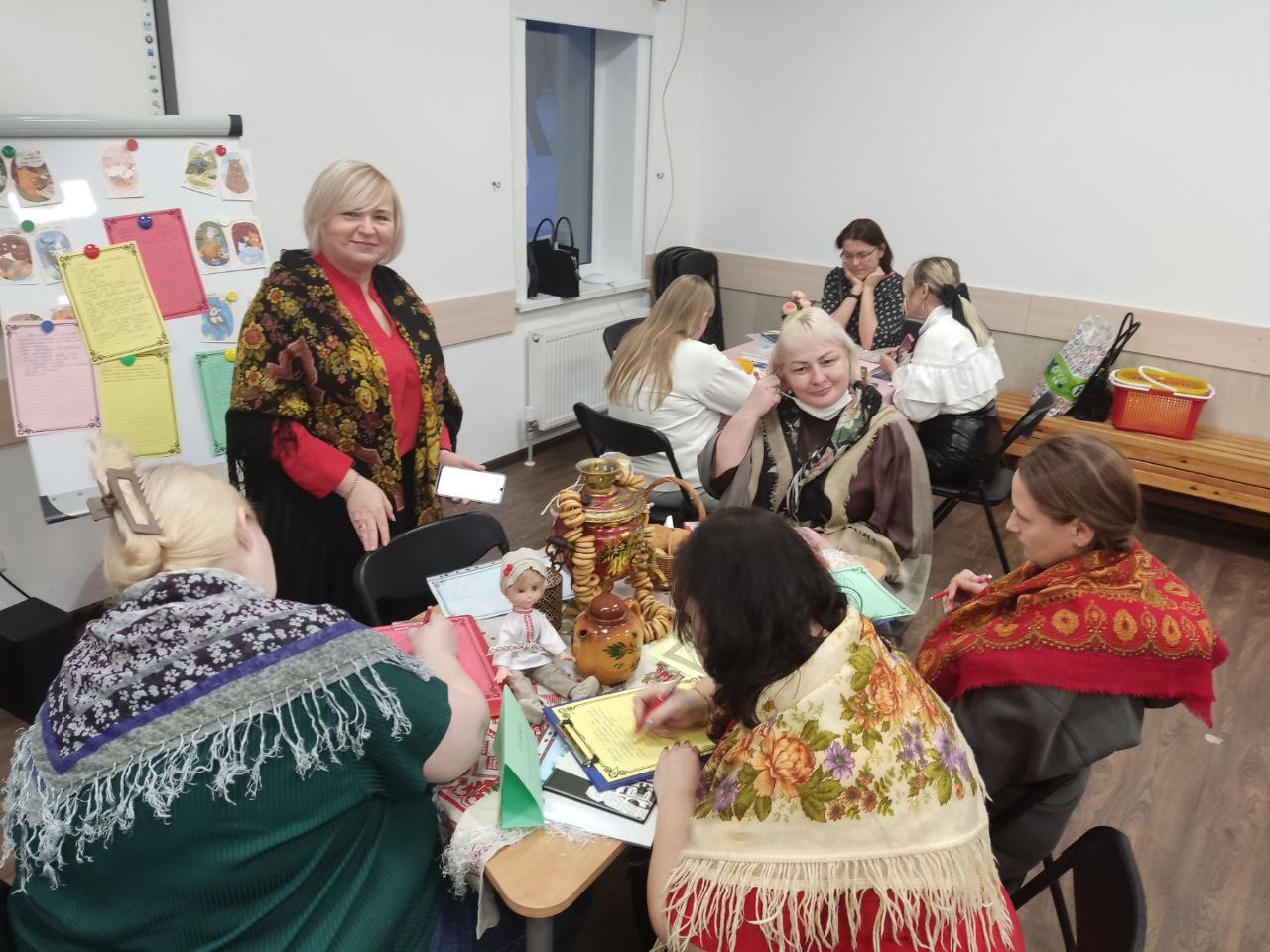 Первая часть мероприятия прошла в интерактивных подгруппах за столами по модели «The world cafe». Данный метод создает непринужденную атмосферу, усиливает взаимодействие, мотивирует на изменения и помогает выработать одно оптимальное решение через обмен мнениями. Была выбрана общая тема встречи «Как оставаться в ресурсе», так как ресурсное состояние критически важно для наших семей, оно помогает эффективно справляться с вызовами воспитания детей, выходить из трудных жизненных ситуаций. Участники работали в пяти тематических подгруппах: «Социально-психологическая аптечка», «Копилка ресурсов», «У самовара», «Цветут цветы», «Картина мира». В роли «хозяина стола» выступал педагог, а родители являлись гостями.